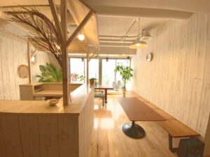 溶岩ホットヨガでは珍しいシャワールーム完備で、スタジオも広く、読書会やカフェを行うコミュニケーションスペースもあります!