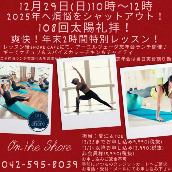 また、レッスン後shore cafeにて、アーユルヴェーダご飯により、忘年会ランチも開催予定です♪